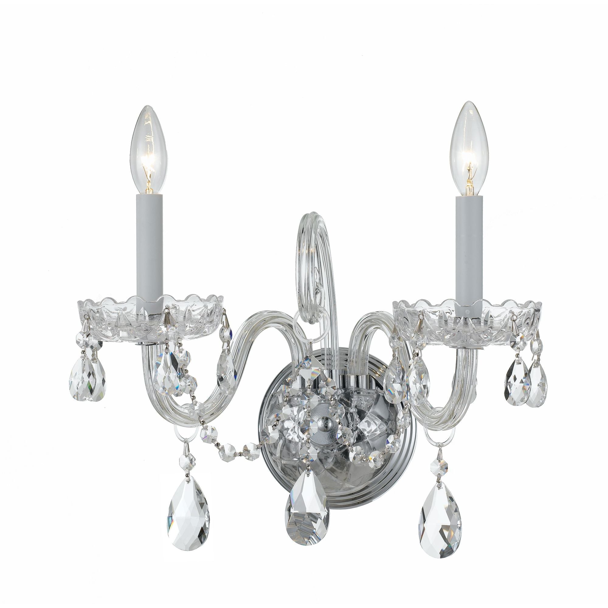 Traditional Crystal 2 Light Hand Cut Crystal Polished Chrome Sconce Hand Cut Crystal 15"W x 12.5"H x 7"D