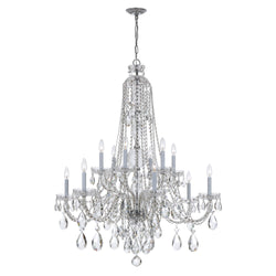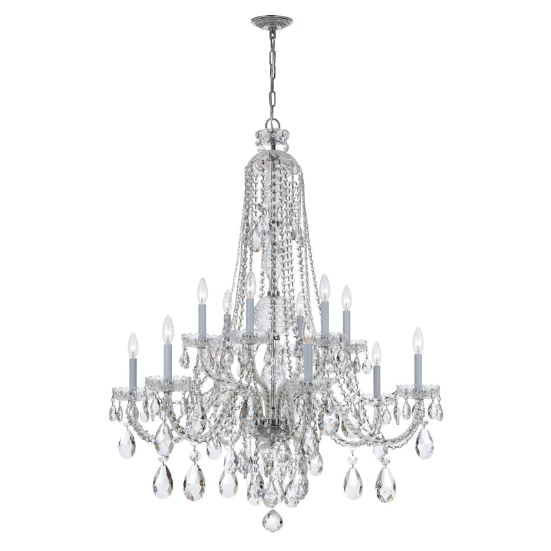 Traditional Crystal 12 Light Hand Cut Crystal Polished Chrome Chandelier Hand Cut Crystal 37.5"W x 48"H x 37.5"D
