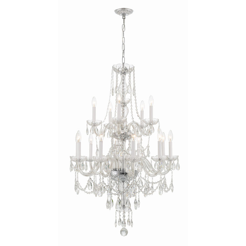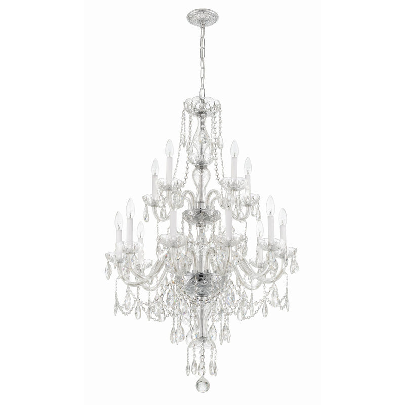 Traditional Crystal 15 Light Hand Cut Crystal Polished Chrome Chandelier Hand Cut Crystal 32"W x 43.75"H x 32"D