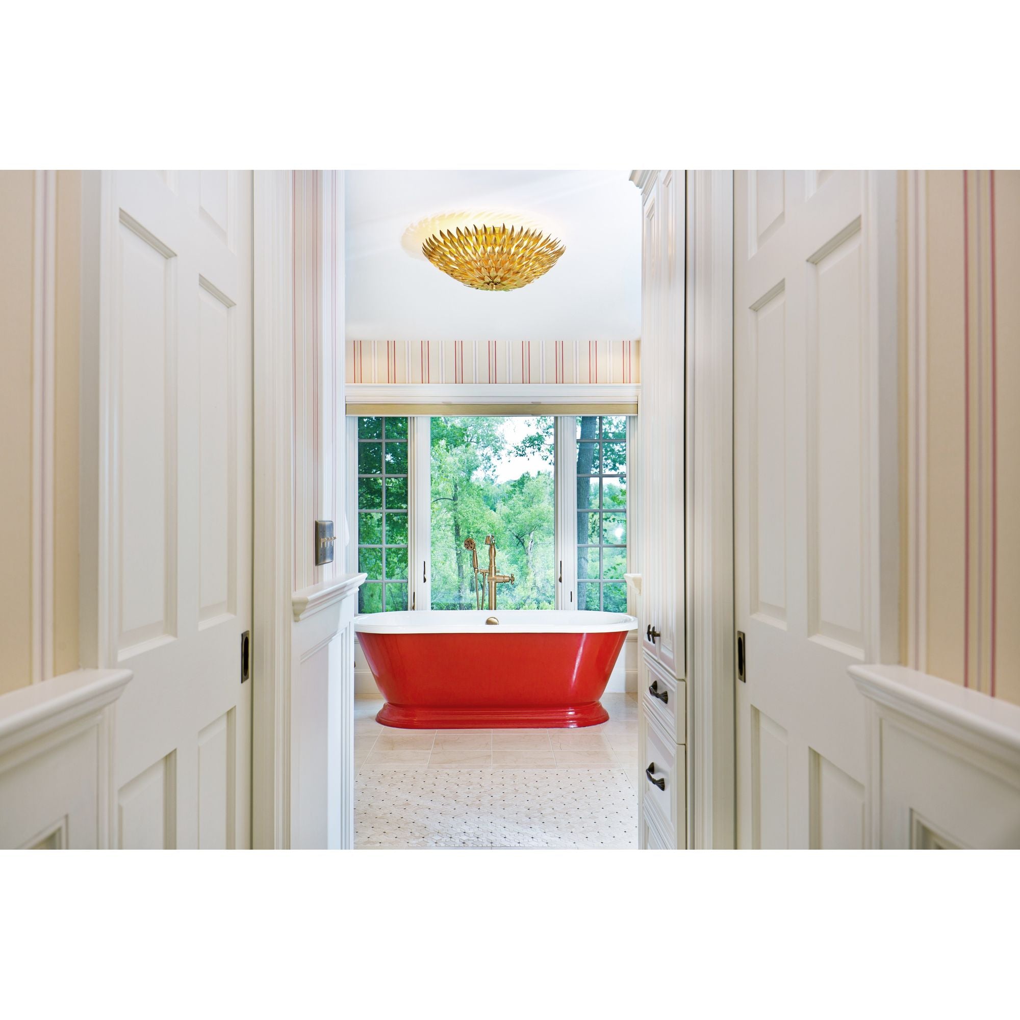 Broche 6 Light Antique Gold Flush Mount 24"W x 9"H x 24"D