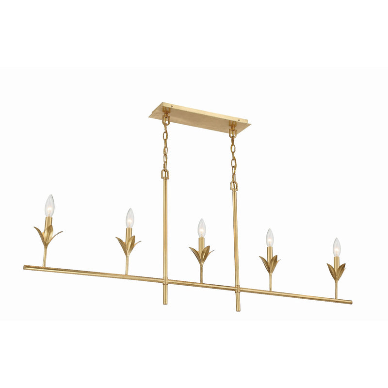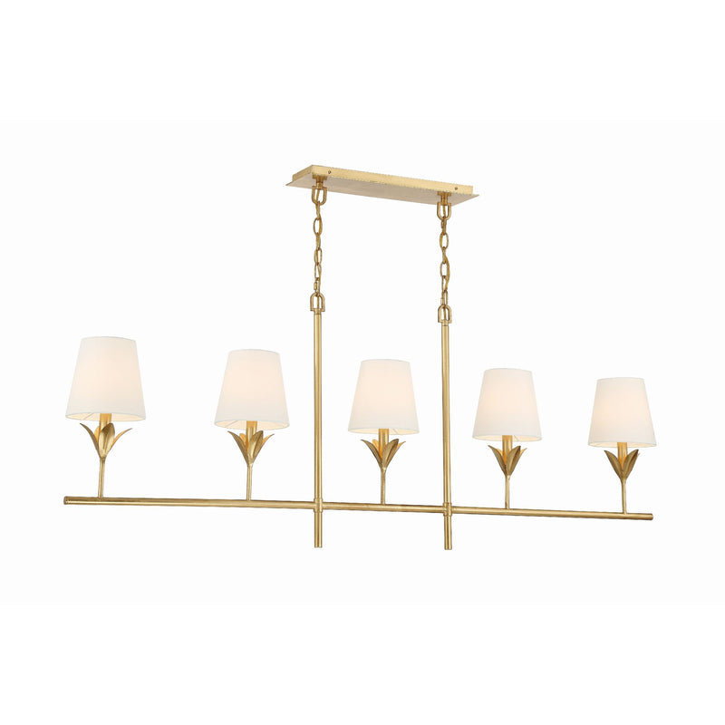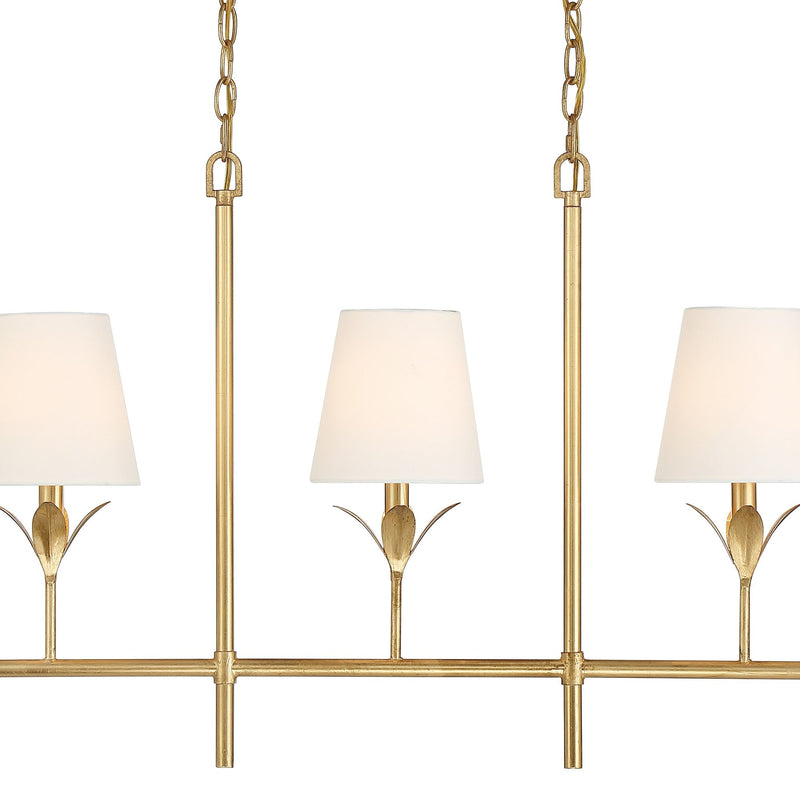 Broche 5 Light Antique Gold Linear Chandelier Silk Shade 53.5"W x 21"H x 6"D