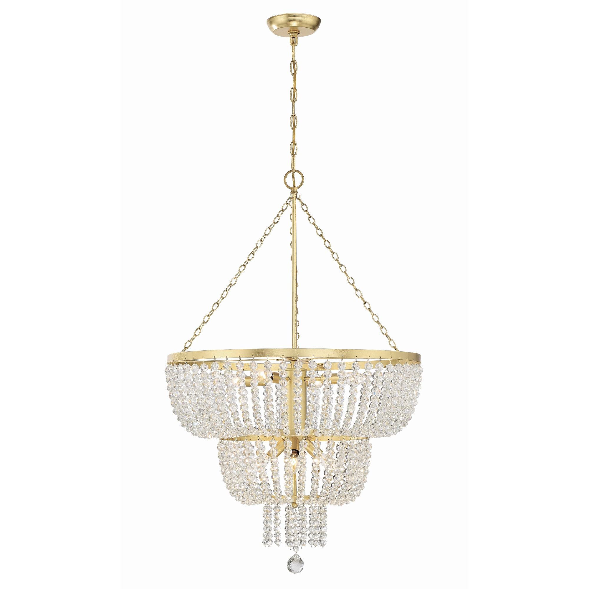 Rylee 8 Light Antique Gold Chandelier Hand Cut Crystal Beads 24.75"W x 37.5"H x 24.75"D