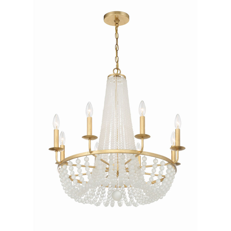 Bella 8 Light Antique Gold Chandelier Frosted Glass Beads 26"W x 26"H x 26"D