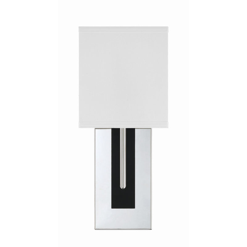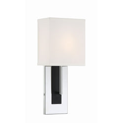 Brent 1 Light Polished Nickel + Black Forged Sconce Silk Shade 6.5"W x 15"H x 4"D