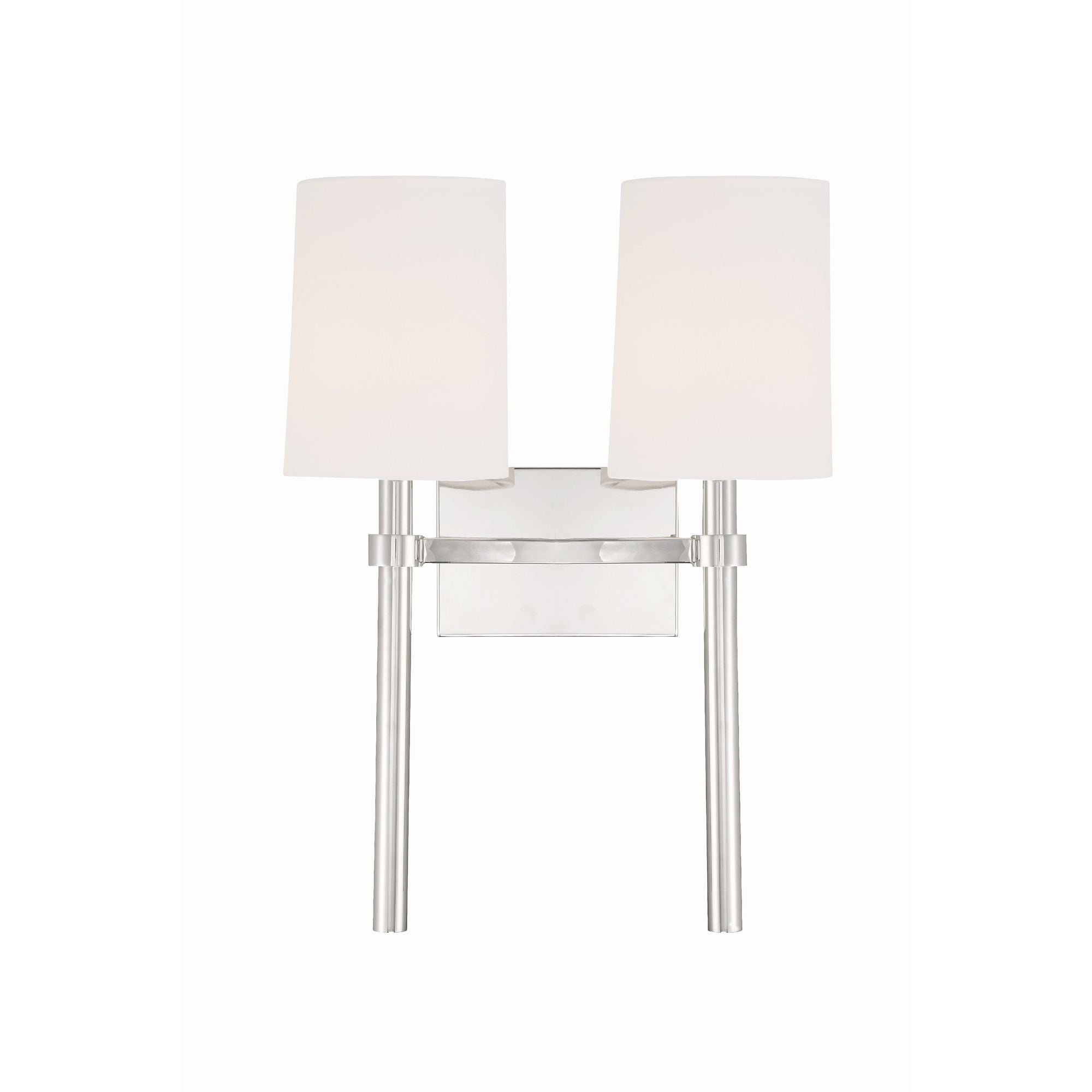 Bromley 2 Light Polished Nickel Sconce Silk Shade 13.75"W x 18.5"H x 7.25"D
