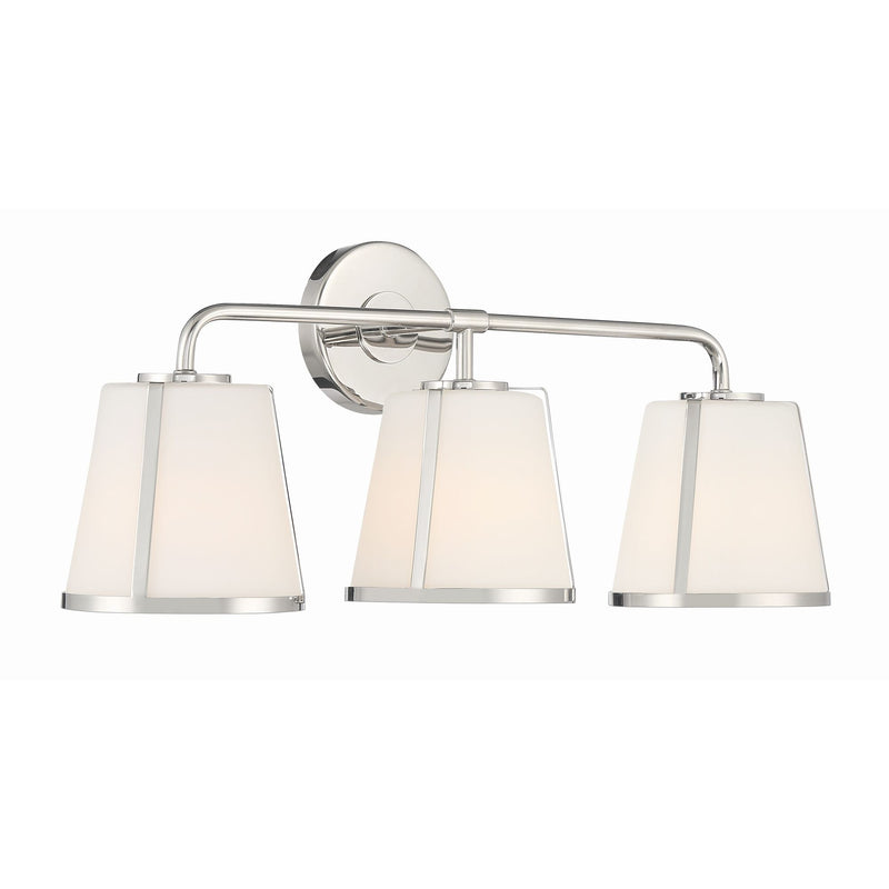 Fulton 3 Light Polished Nickel Bathroom Vanity White Glass 23.25"W x 9.25"H x 7.5"D