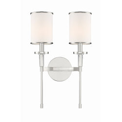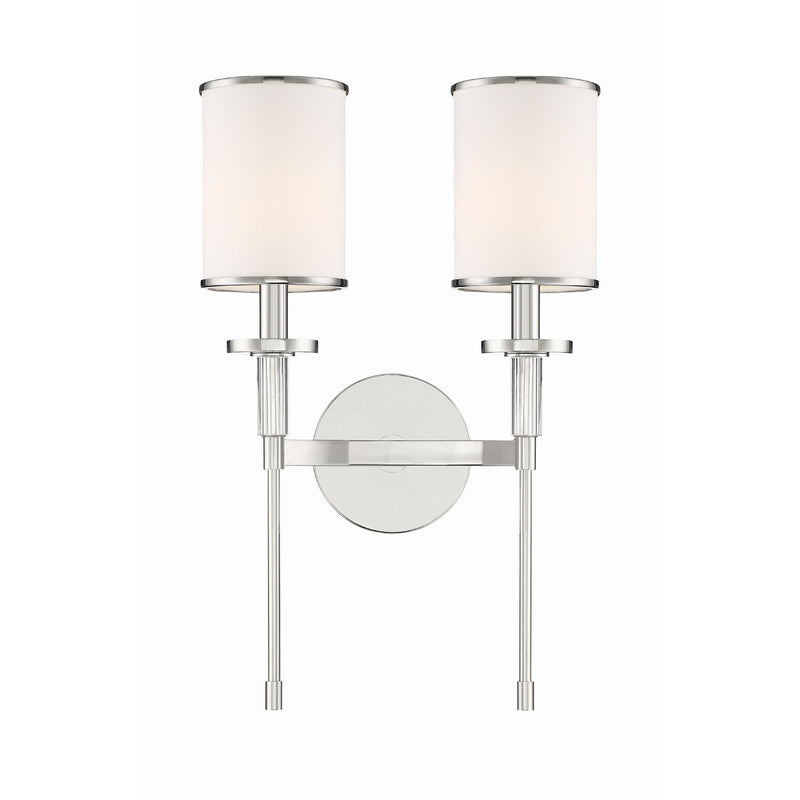 Hatfield 2 Light Polished Nickel Sconce Crystal Accents Silk Shade 12"W x 18.5"H x 6"D