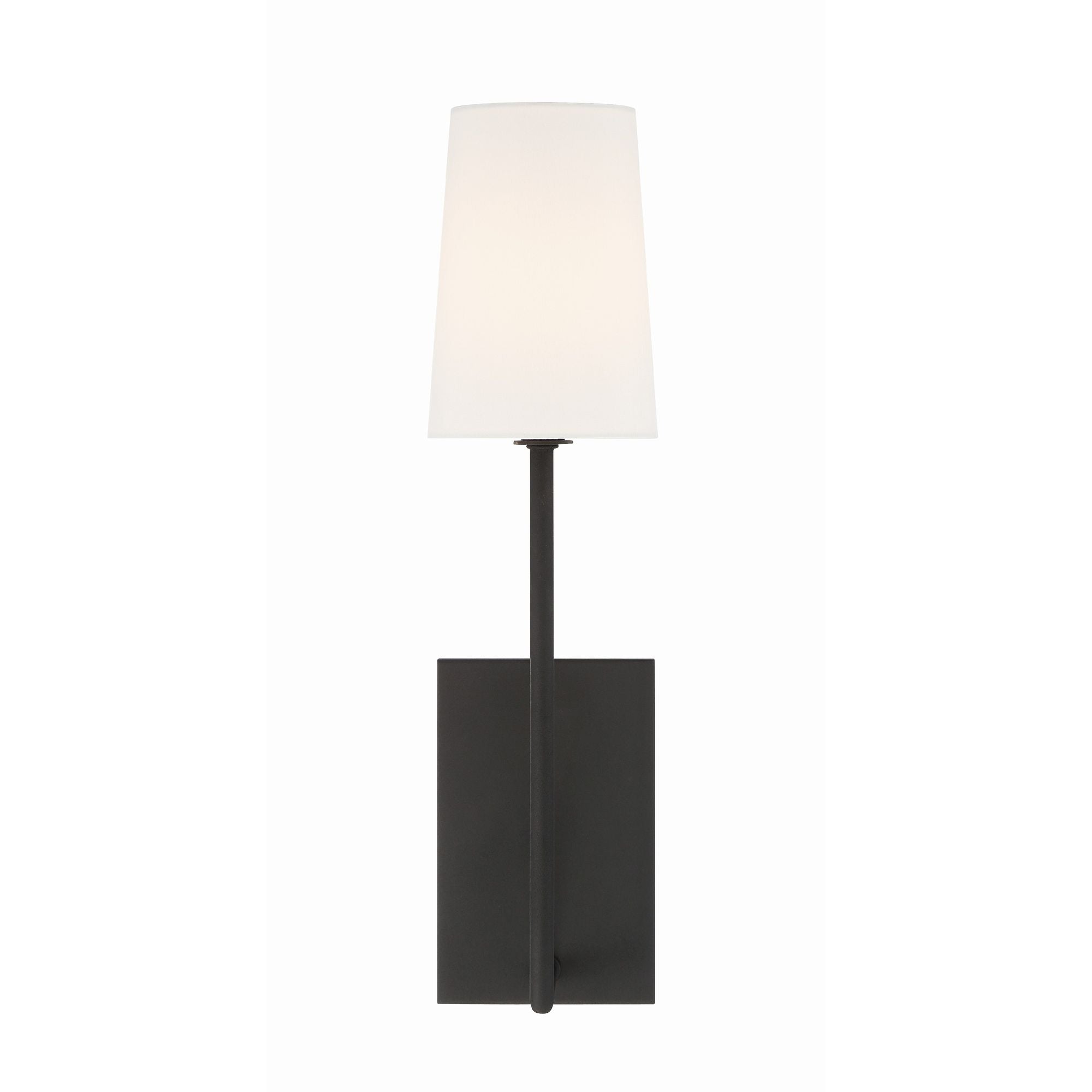 Lena 1 Light Black Forged Sconce Silk Shade 4.5"W x 18"H x 7"D