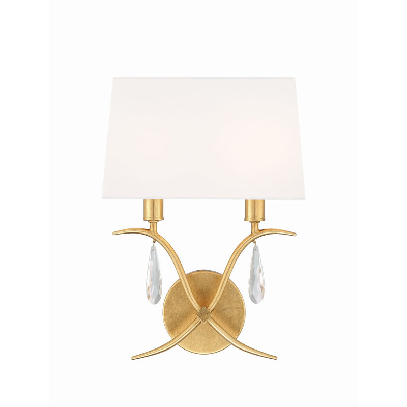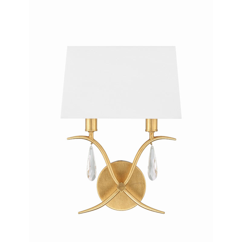 Rollins 2 Light Antique Gold Sconce Hand Cut Crystal Silk Shade 10"W x 14"H x 4.5"D