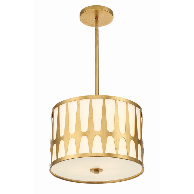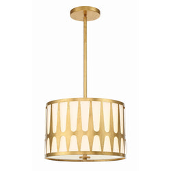 Royston 3 Light Antique Gold Pendant Silk Shade 15"W x 10.75"H x 15"D
