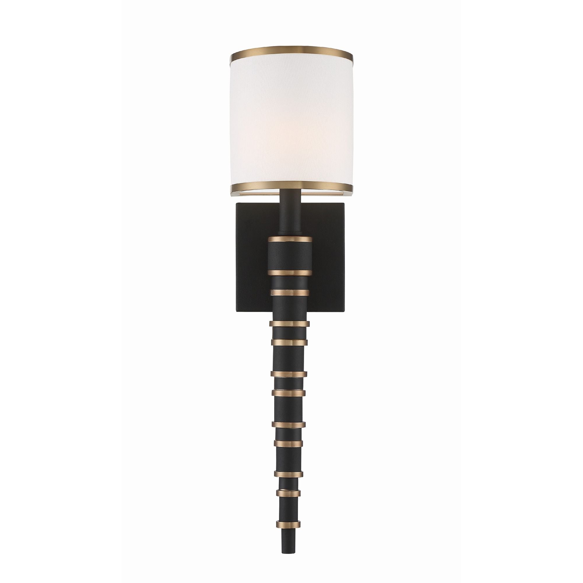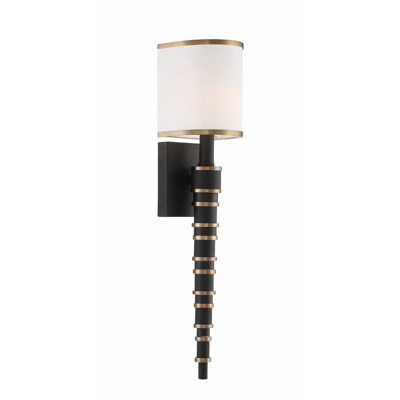 Sloane 1 Light Vibrant Gold + Black Forged Sconce Silk Shade 5"W x 20"H x 3.5"D