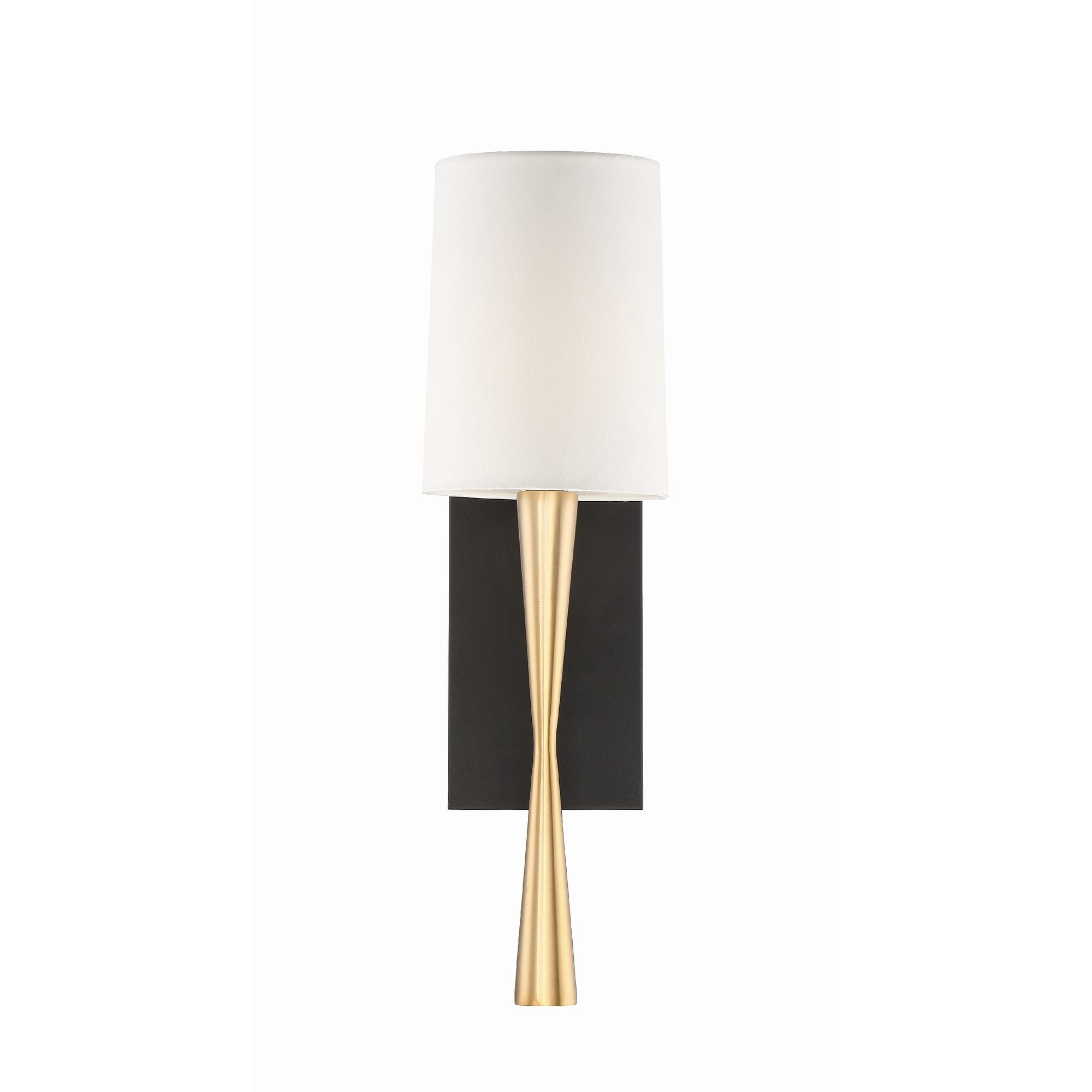 Trenton 1 Light Aged Brass + Black Forged Sconce Silk Shade 5.5"W x 18.5"H x 6.5"D