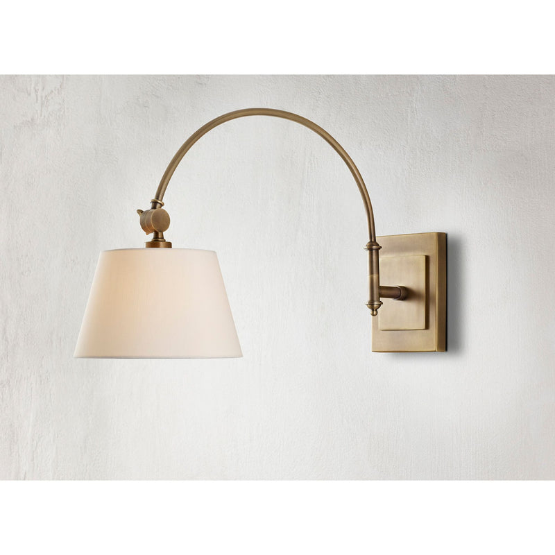 Ashby Brass Swing-Arm Sconce, White Shade - Antique Brass