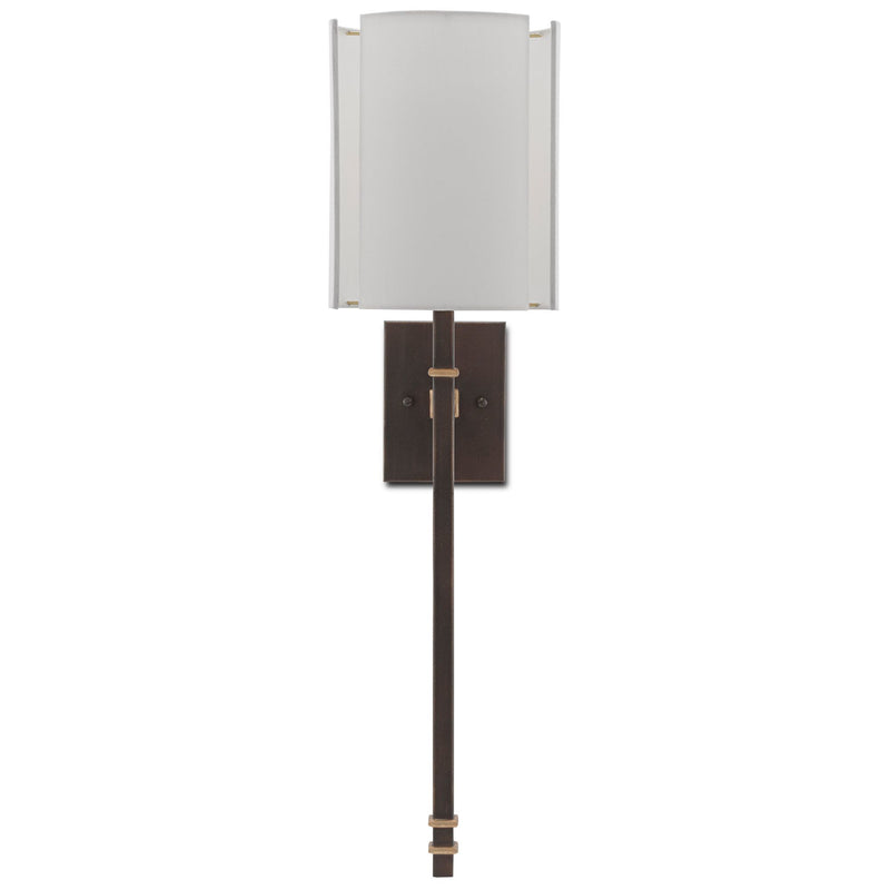 Rocher Bronze Wall Sconce, White Shade - Hand Rubbed Bronze/Contemporary Gold Leaf