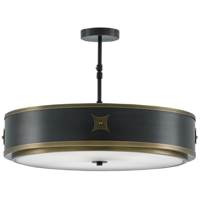 Huntsman Black Semi-Flush Mount - Satin Black/Antique Brass/White