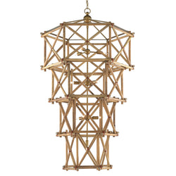 Kingali Grande Rattan Chandelier - Natural/New Brass