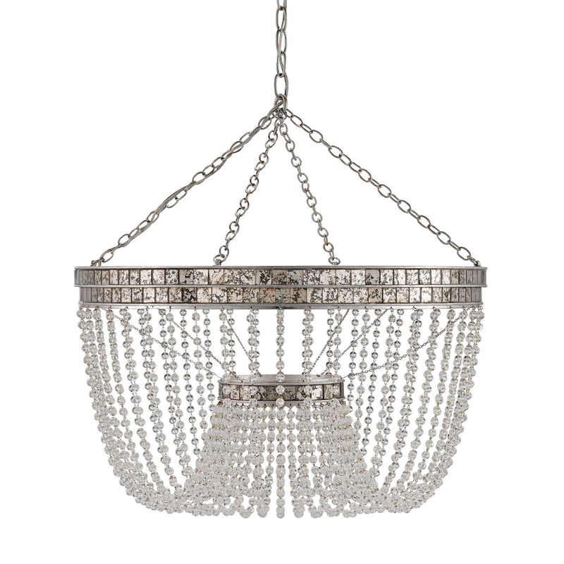 Highbrow Beaded Glass Chandelier - Contemporary Silver Leaf/Distressed Silver Leaf