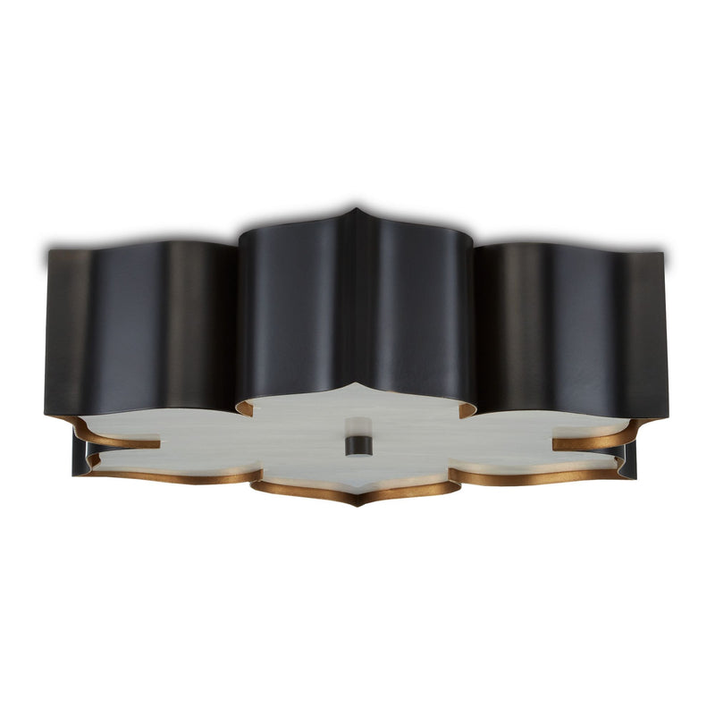 Grand Lotus Black Flush Mount - Satin Black /Contemporary Gold