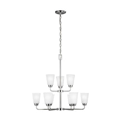 Kerrville Nine Light Chandelier Transitional 29.5" Height Steel Round Satin Etched Shade in Chrome