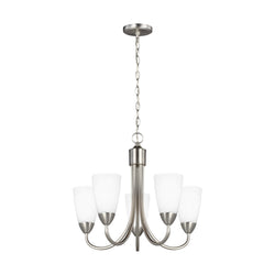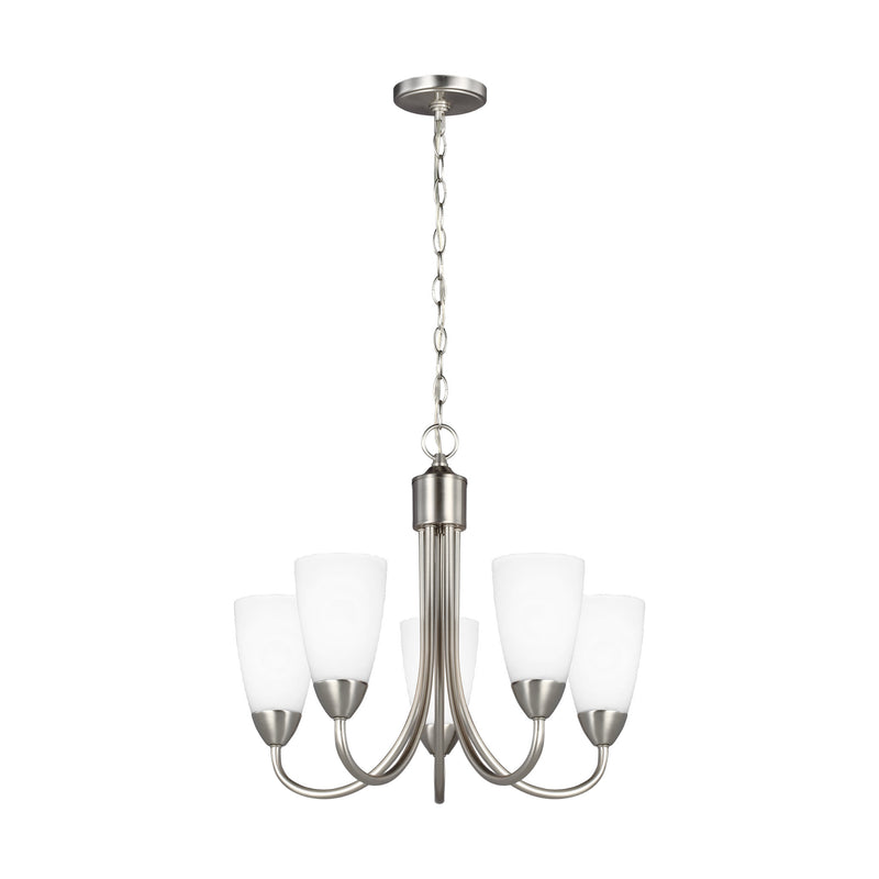 Seville Five Light Chandelier LED Transitional 17.5" Height Steel Round Etched / White Inside Shade in Brushed Nickel