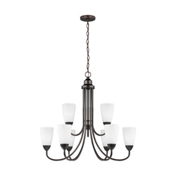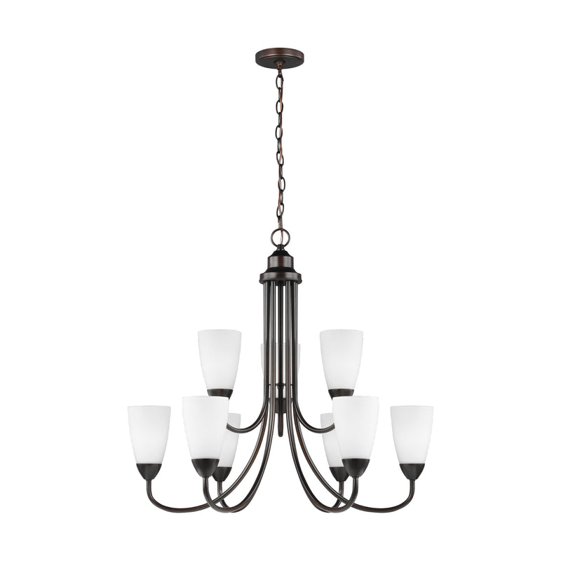 Seville Nine Light Chandelier Transitional 27.125" Height Steel Round Etched / White Inside Shade in Bronze