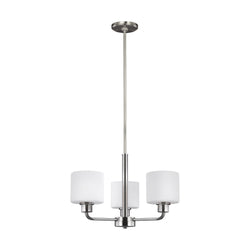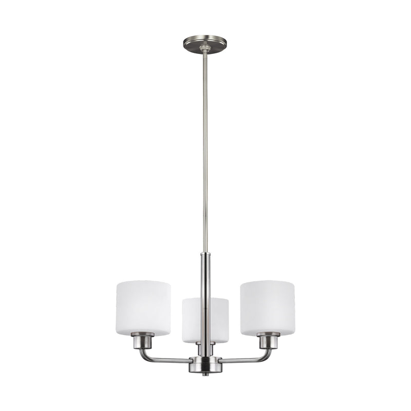 Canfield Three Light Chandelier Modern 13.125" Height Steel Round Etched / White Inside Shade in Brushed Nickel