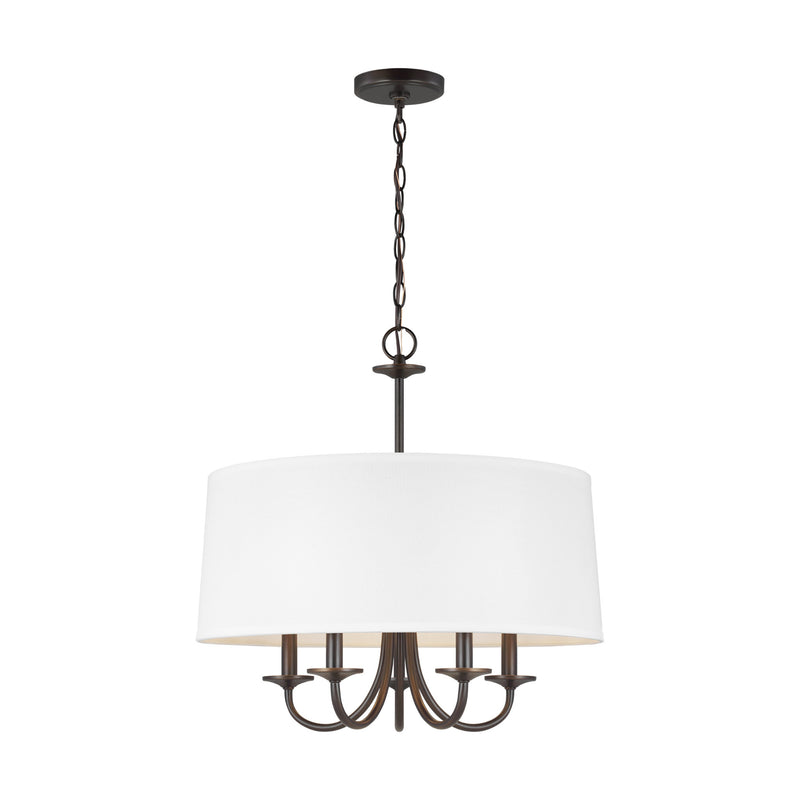 Seville Five Light Shade Chandelier Transitional 22.125" Height Steel Round White Linen in Bronze