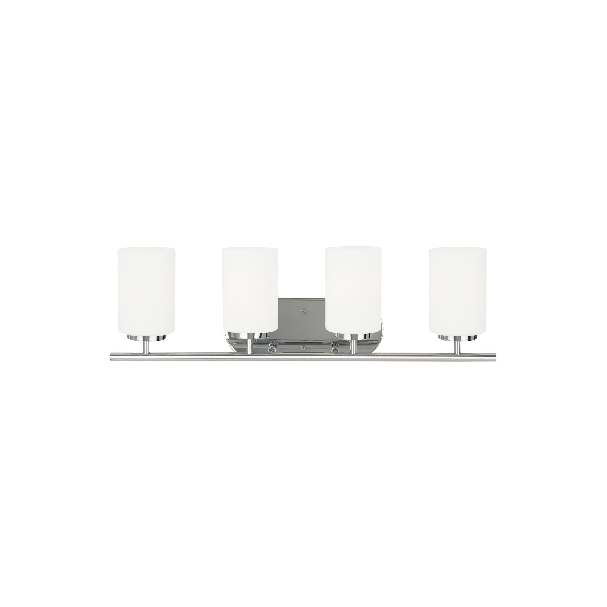 Oslo Four Light Wall / Bath Contemporary Fixture 27.5" Width 8.5" Height Steel Round Cased Opal Etched Shade in Chrome