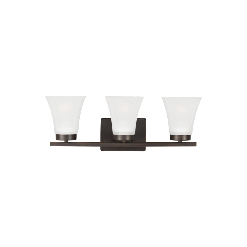 Bayfield Three Light Wall / Bath Contemporary Fixture 20" Width 7.75" Height Steel Square Satin Etched Shade in Bronze