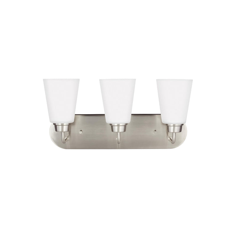 Kerrville Three Light Wall / Bath LED Transitional Fixture 18" Width 9" Height Steel Round Satin Etched Shade in Brushed Nickel