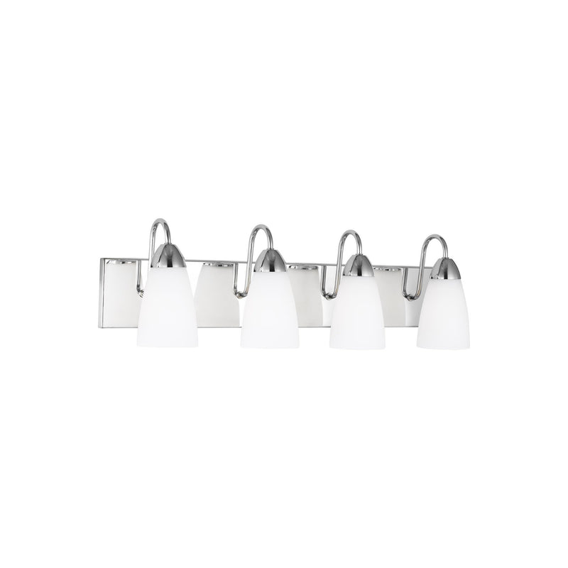 Seville Four Light Wall / Bath LED Transitional Fixture 28.375" Width 8.5" Height Steel Round Etched White Inside Shade in Chrome