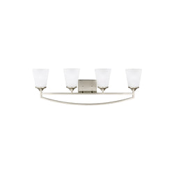 Hanford Four Light Wall/ Bath Transitional Wall Fixture 33.5" Width 11.25" Height Steel Round Satin Etched Shade in Brushed Nickel