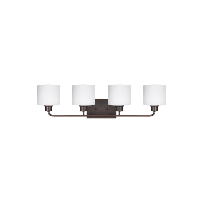 Canfield Four Light Wall / Bath Modern Fixture 31.875" Width 8.375" Height Steel Round Etched White Inside Shade in Bronze