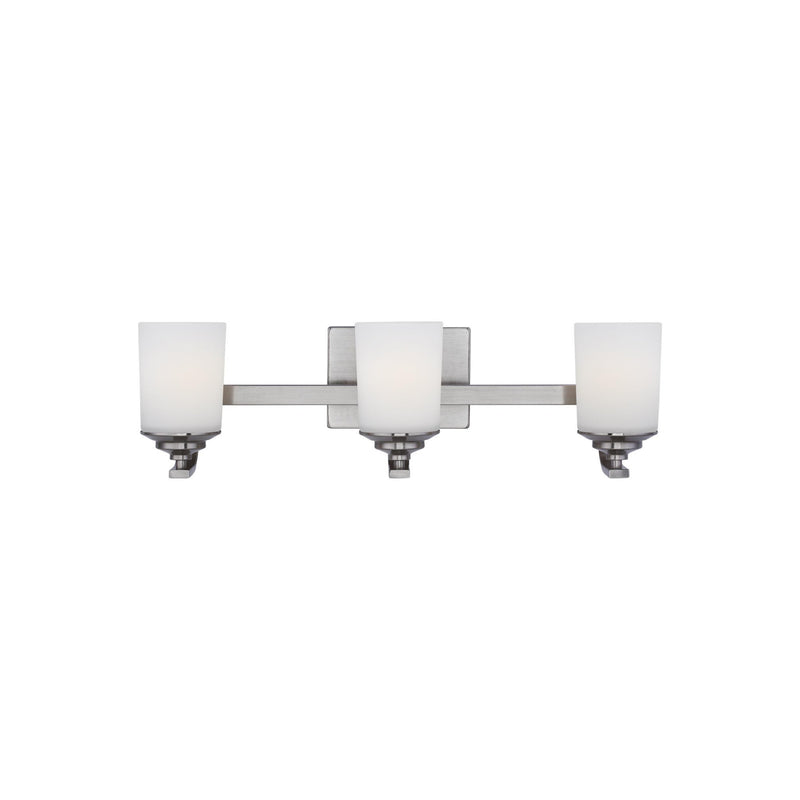 Kemal Three Light Wall / Bath LED Transitional Fixture 24" Width 7.125" Height Steel Round Etched White Inside Shade in Brushed Nickel