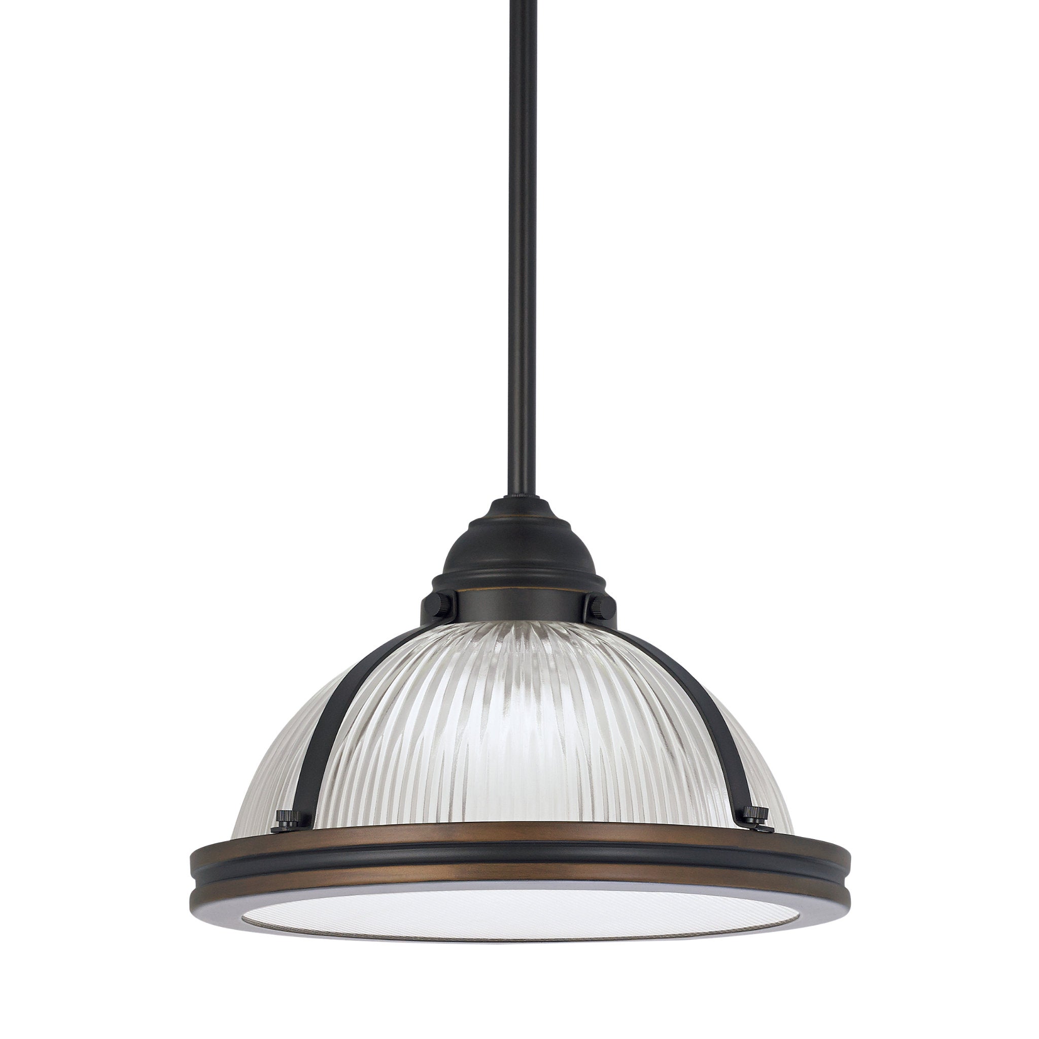 Pratt Street Prismatic One Light Pendant Contemporary 7.25" Height Steel Round Clear Textured Shade in Autumn Bronze