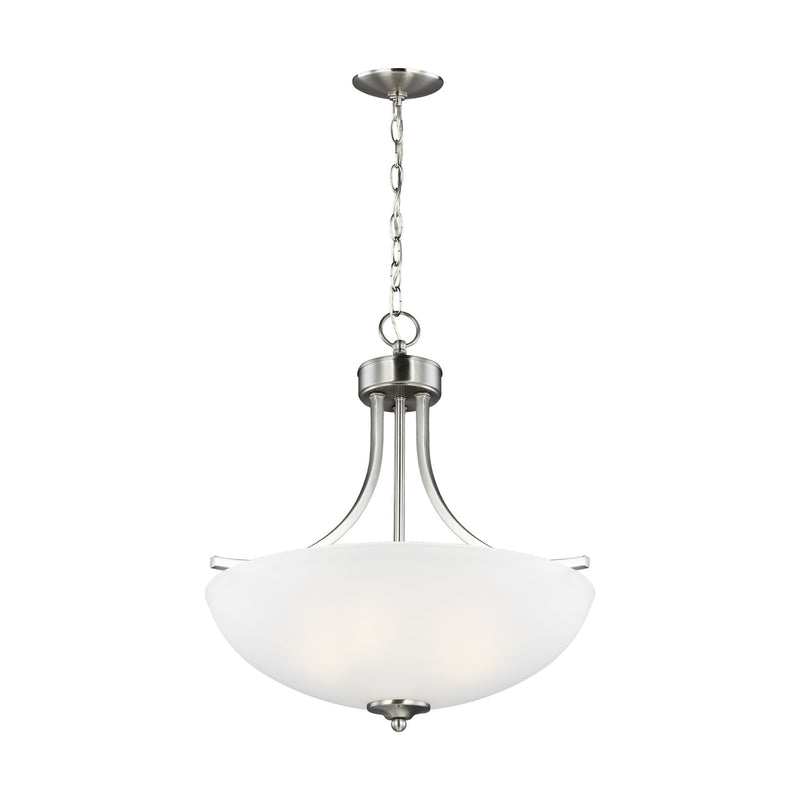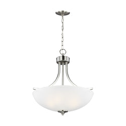 Geary Medium Three Light Pendant LED Transitional 20.625" Height Steel Round Satin Etched Shade in Brushed Nickel