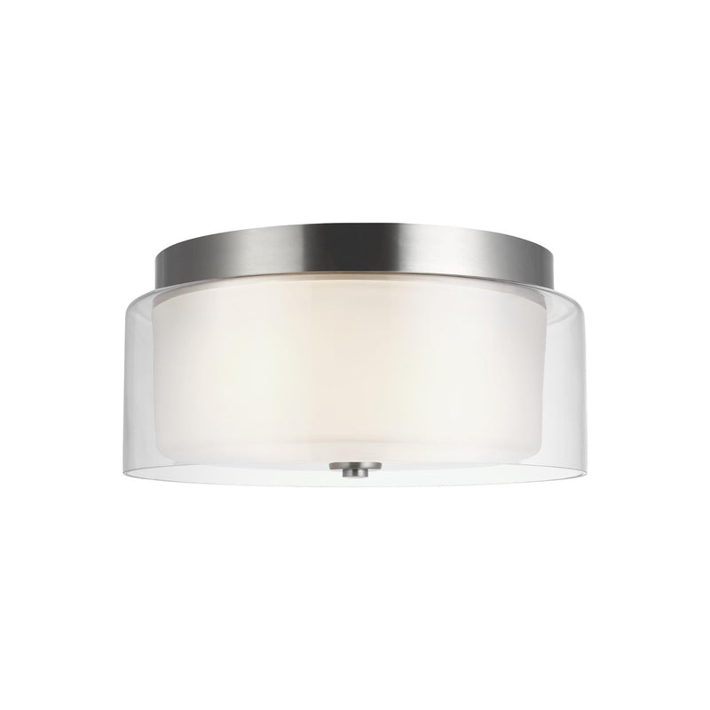 Elmwood Park Two Light Ceiling Flush Mount Traditional Fixture 6.125" Height Steel Round Satin Etched Shade in Brushed Nickel