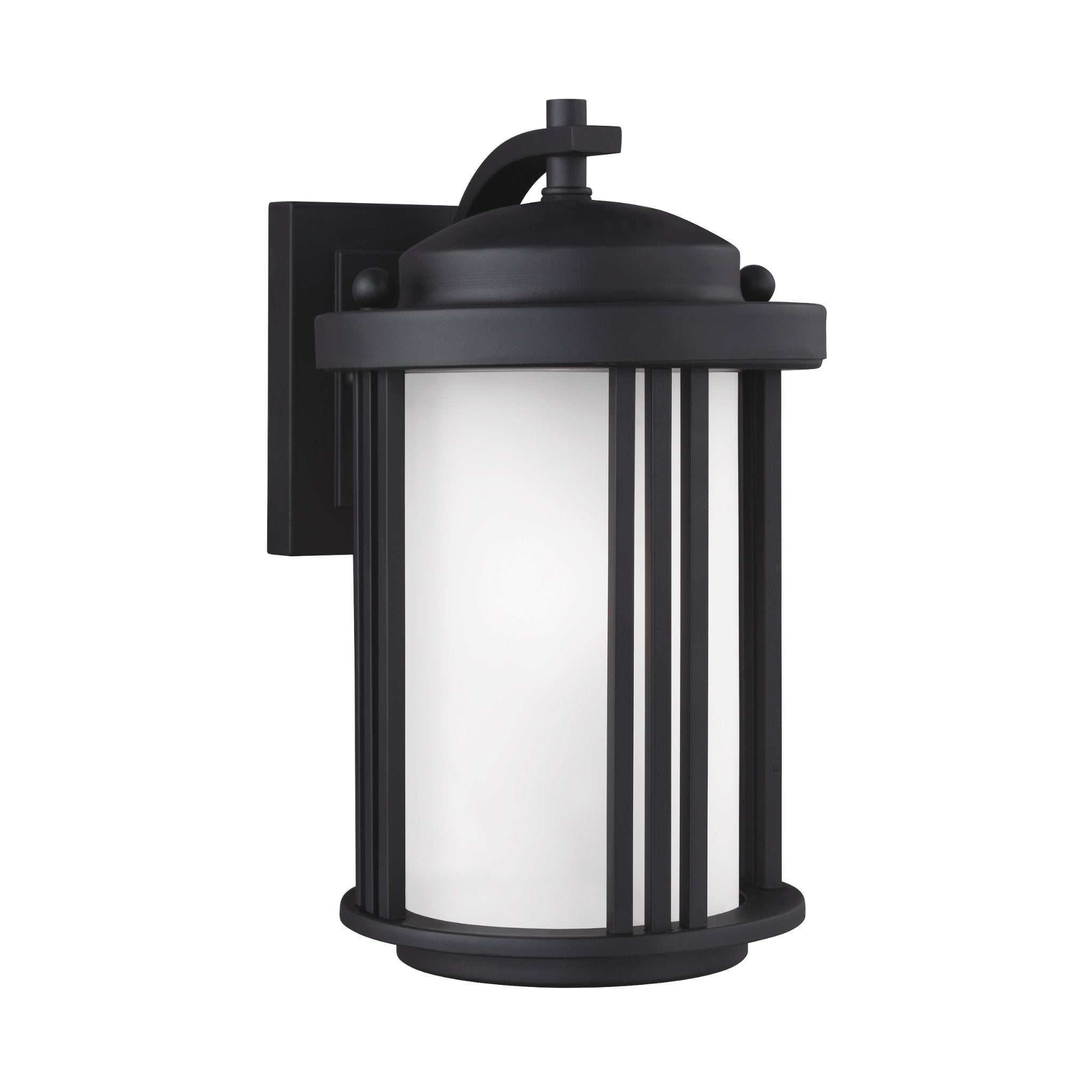 Crowell Small One Light Outdoor Wall Lantern Contemporary Fixture 6" Width 10" Height Aluminum Round Satin Etched Shade in Black
