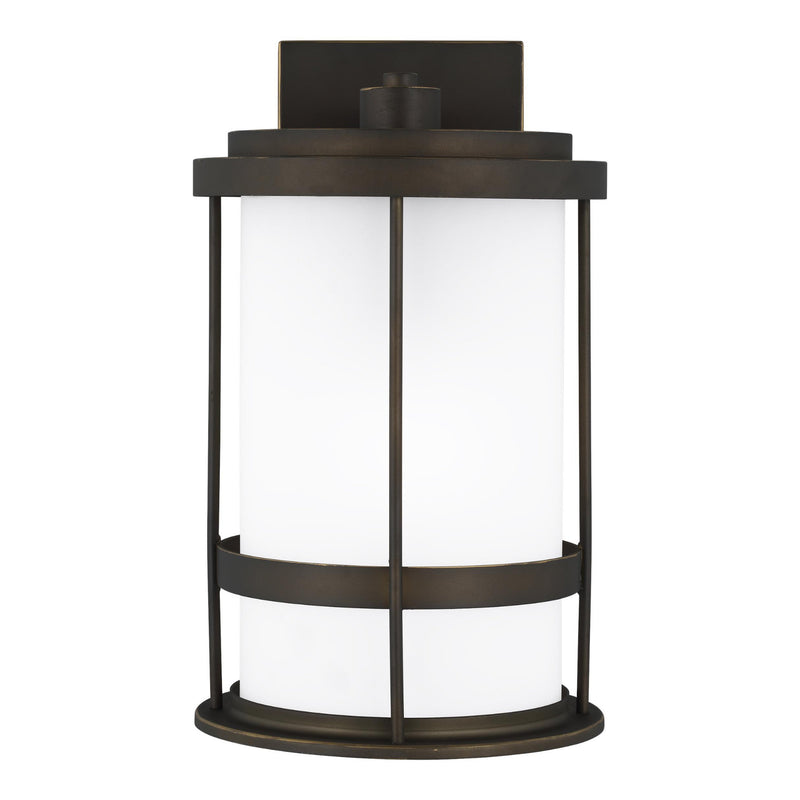 Wilburn Medium One Light Outdoor Wall Lantern LED Transitional Fixture Dark Sky 8" Width 13.5" Height Aluminum Round Satin Etched Shade in Antique Bronze