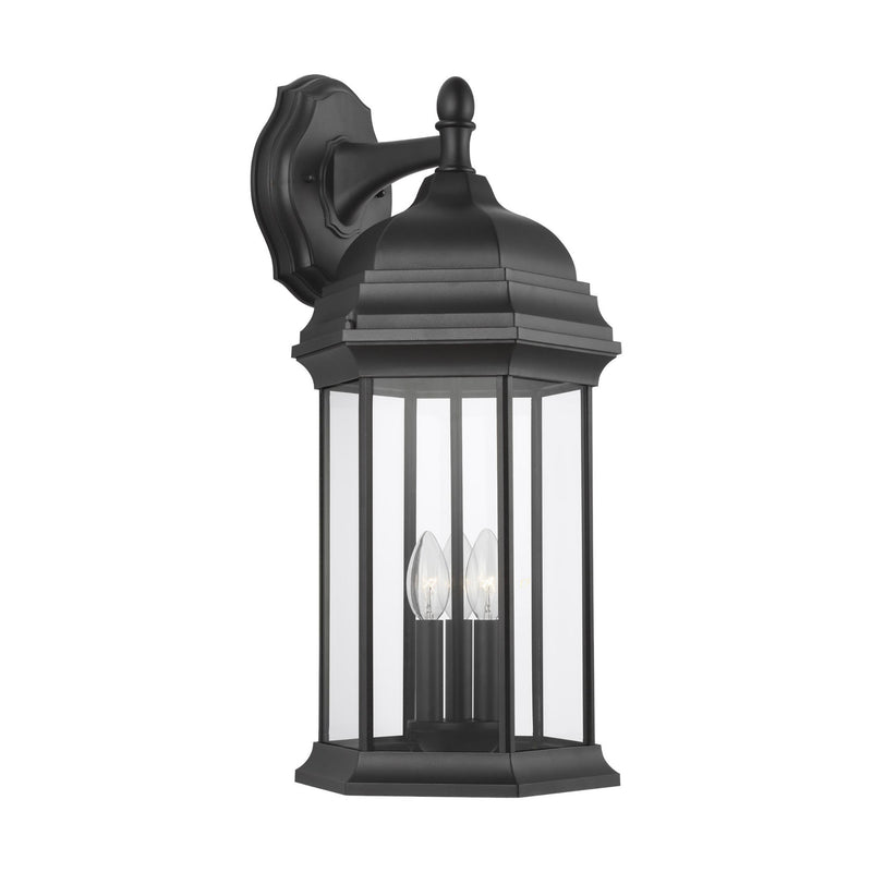Sevier Extra Large Three Light Downlight Outdoor Wall Lantern Traditional Fixture 12.5" Width 23.25" Height Die Cast Aluminum Rectangular Clear Shade in Black