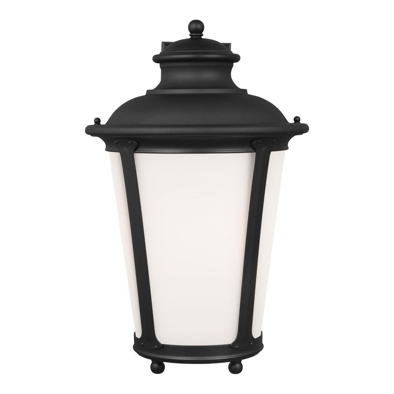 Cape May Extra Large One Light Outdoor Wall Lantern Traditional Fixture 13" Width 20.25" Height Aluminum Round Etched / White Inside Shade in Black