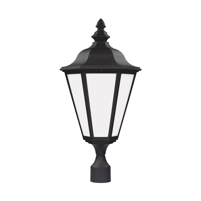 Brentwood One Light Outdoor Post Lantern Traditional Fixture 25.75" Height Die Cast Aluminum Irregular Smooth White Shade in Black