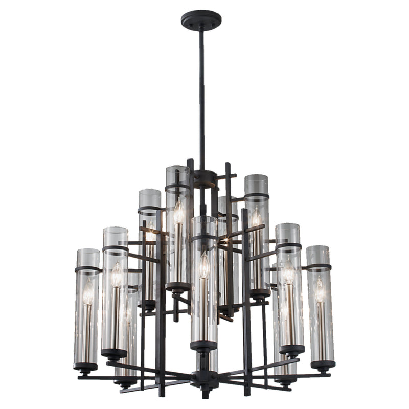 Ethan Extra Large Chandelier Transitional 26.625" Height Steel Round Clear Shade in Antique Forged Iron / Brushed