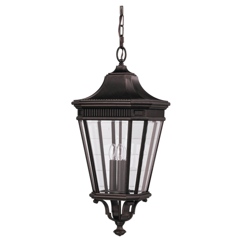 Cotswold Lane Medium Pendant Traditional Outdoor Fixture 12" Width 26.5" Height Aluminum Irregular Clear Beveled Shade in Grecian Bronze