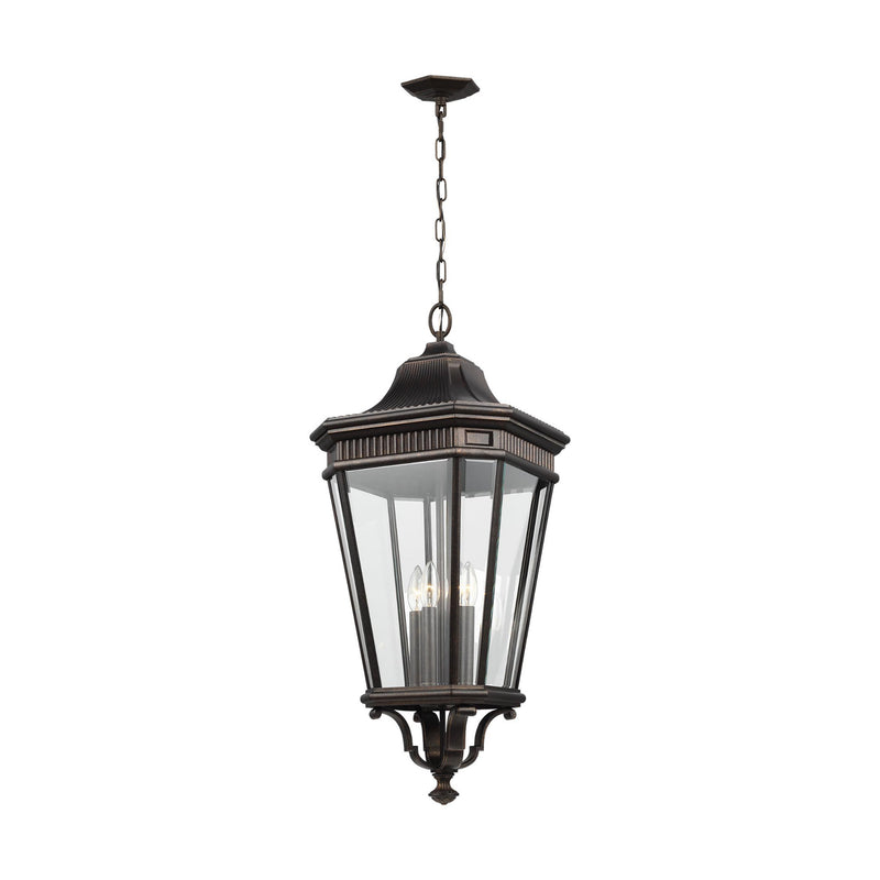Cotswold Lane Large Pendant Traditional Outdoor Fixture 13.625" Width 31" Height Aluminum Irregular Clear Beveled Shade in Grecian Bronze