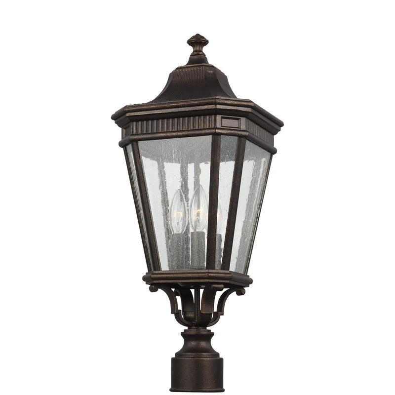Cotswold Lane Small Post Lantern Traditional Outdoor Fixture 9.5" Width 22.5" Height Aluminum Irregular Clear Seeded Shade in Grecian Bronze