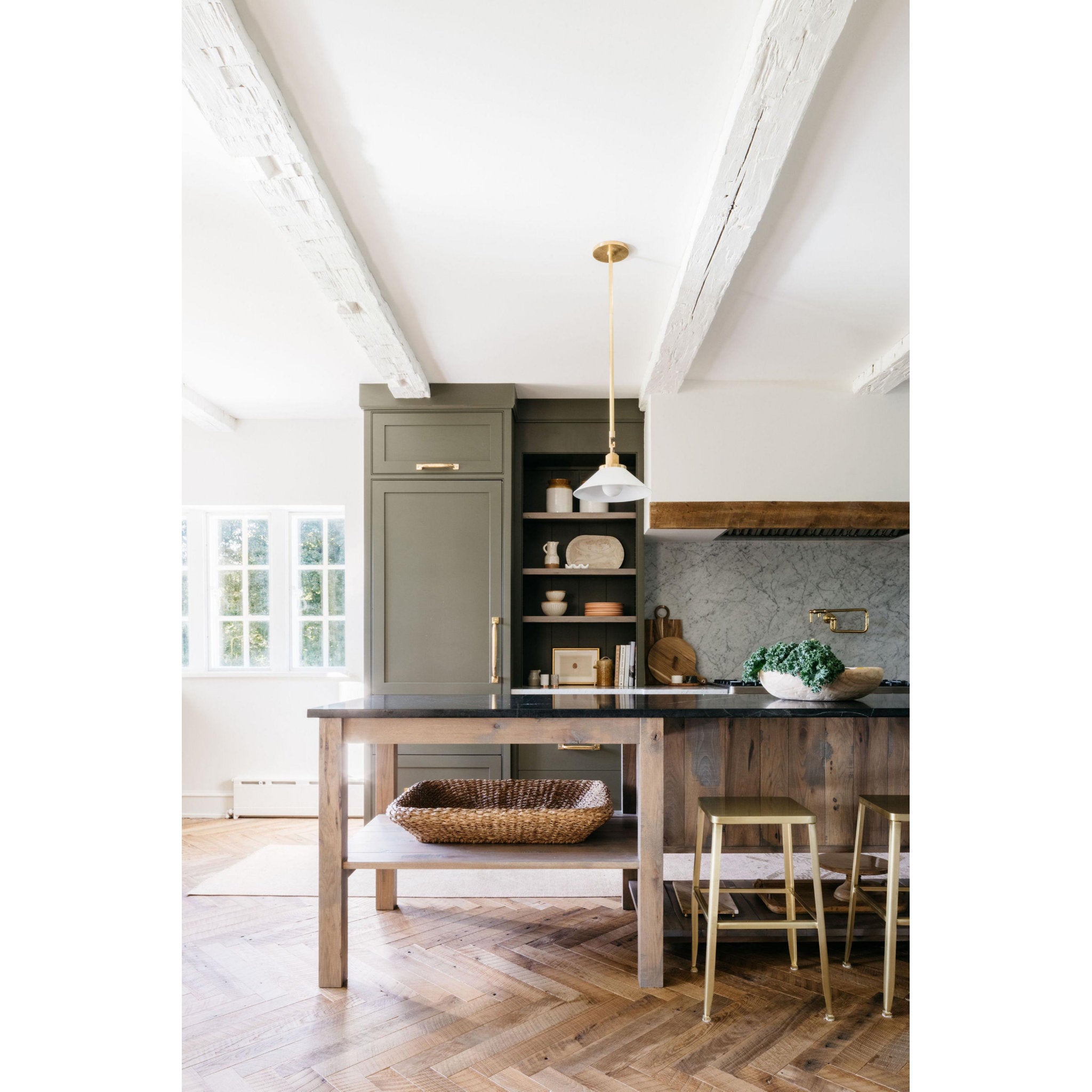Syosset 1-Light Pendant in Aged Brass/Soft Off White 12L x 12W x 9.25H
