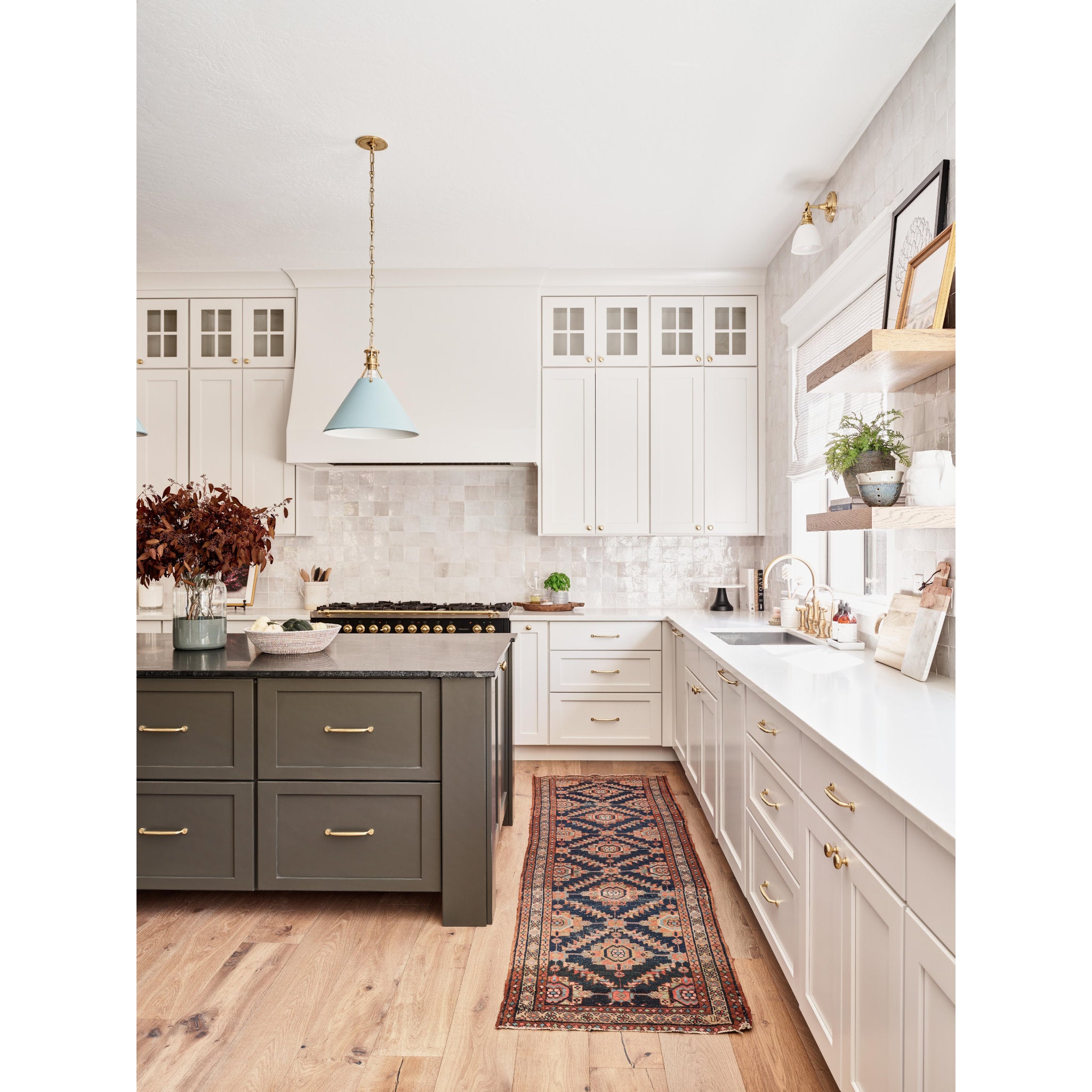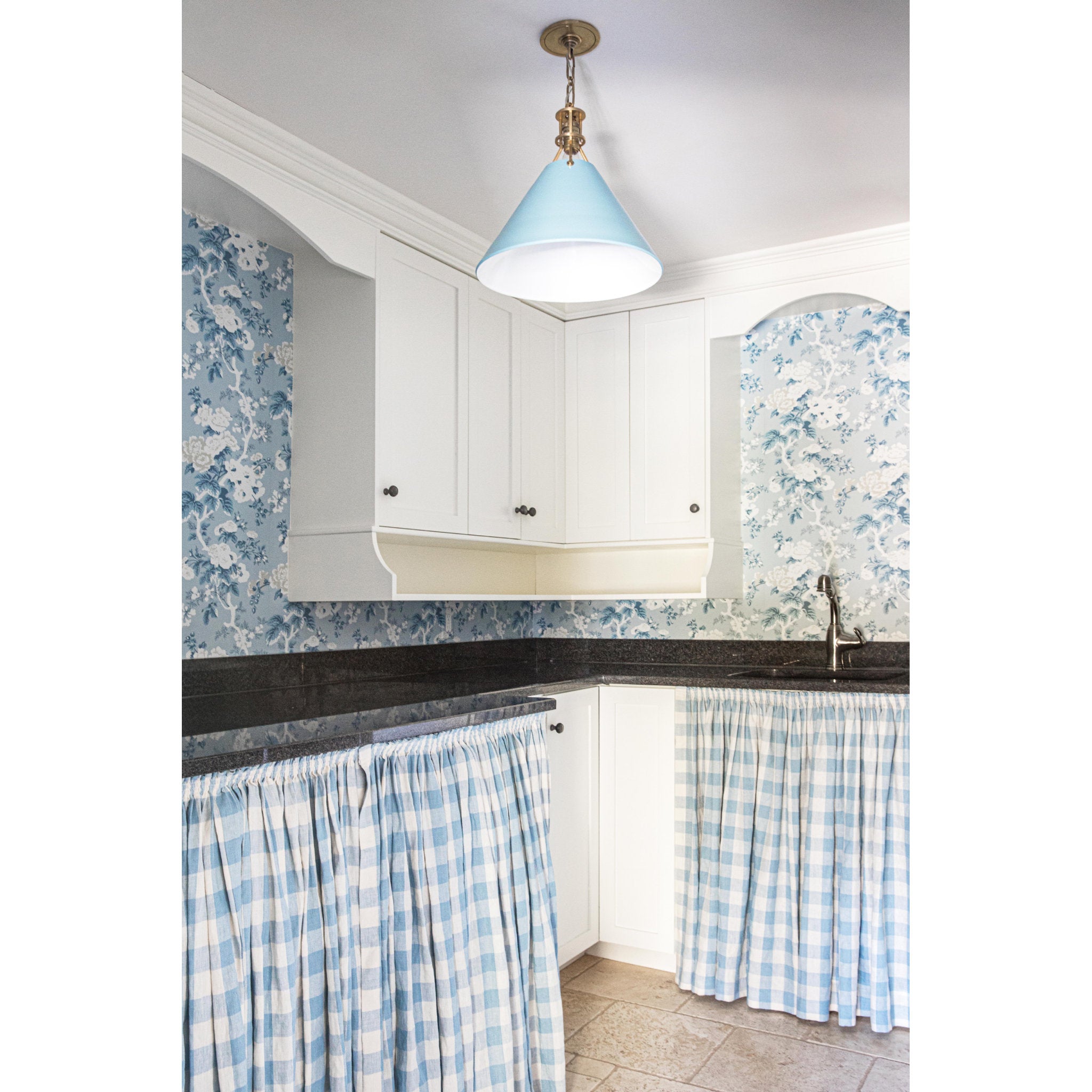 Painted No.2 1-Light Pendant in Aged Brass/Blue Bird by Mark D. Sikes 16L x 16W x 14.5H