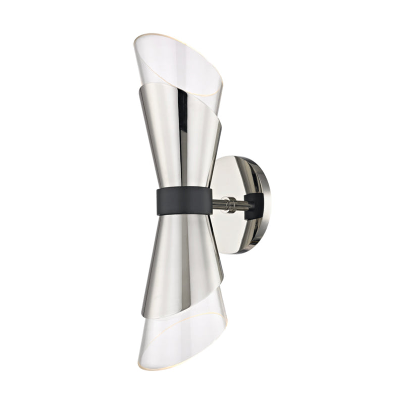 Angie 2-Light Wall Sconce in Polished Nickel/Black 4.75L x 4.75W x 15H