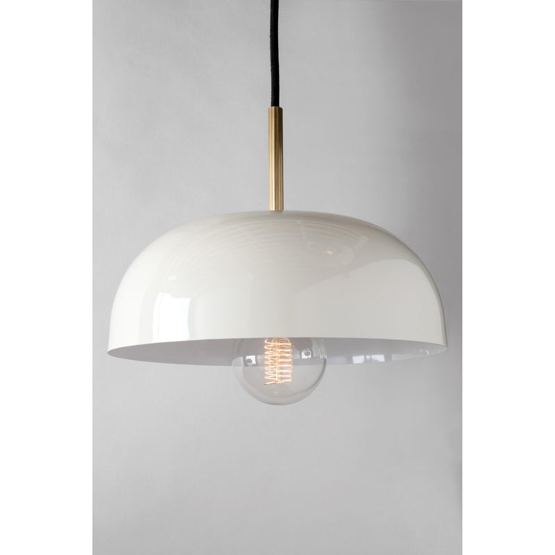 Avery 1-Light Pendant in Aged Brass/Cream 14L x 14W x 13.75H